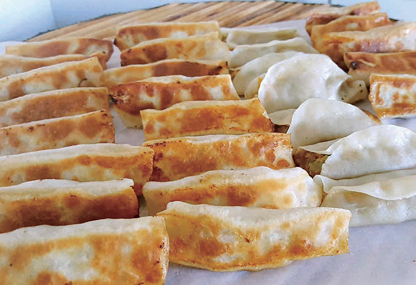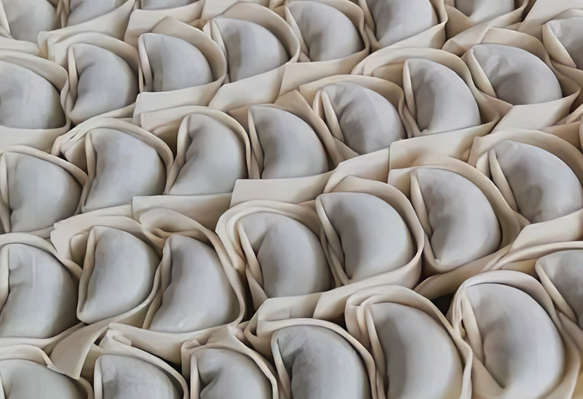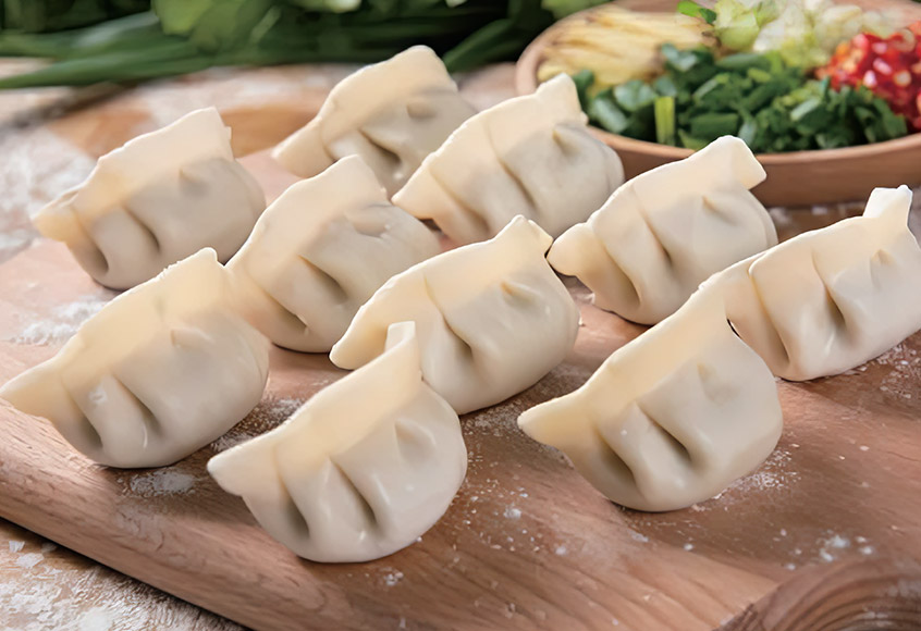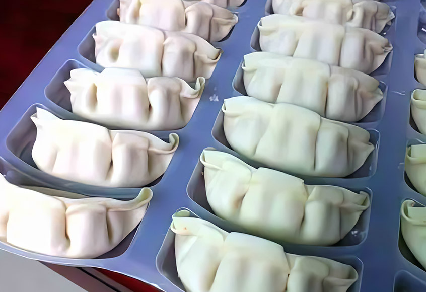 Dumplings av olika former och fyllningar med hög hastighet.